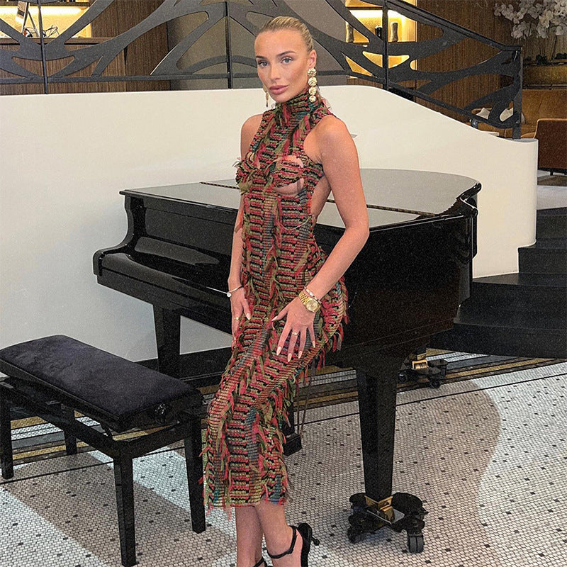 Classic Style Round Neck Sleeveless Stitched Backless Pullover Solid Color Dress